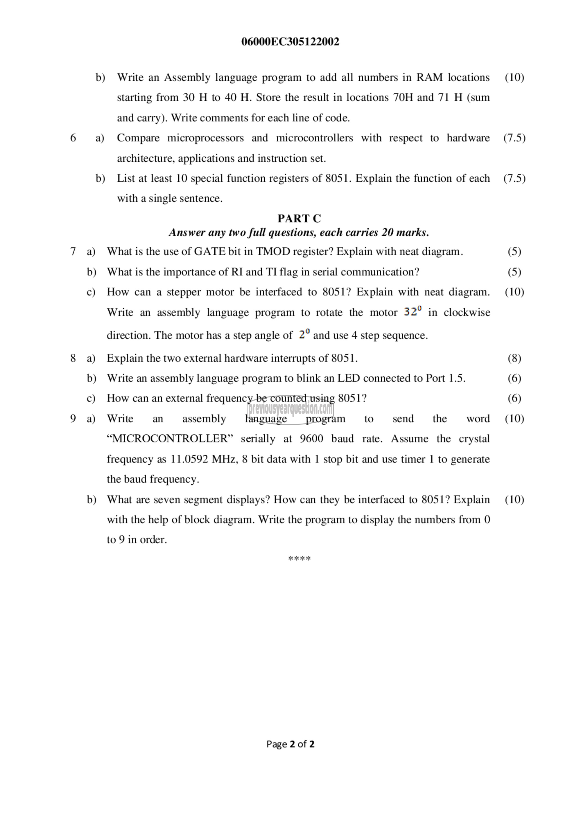 “MICROCONTROLLER” serially at 9600 baud rate. Assume the crystal