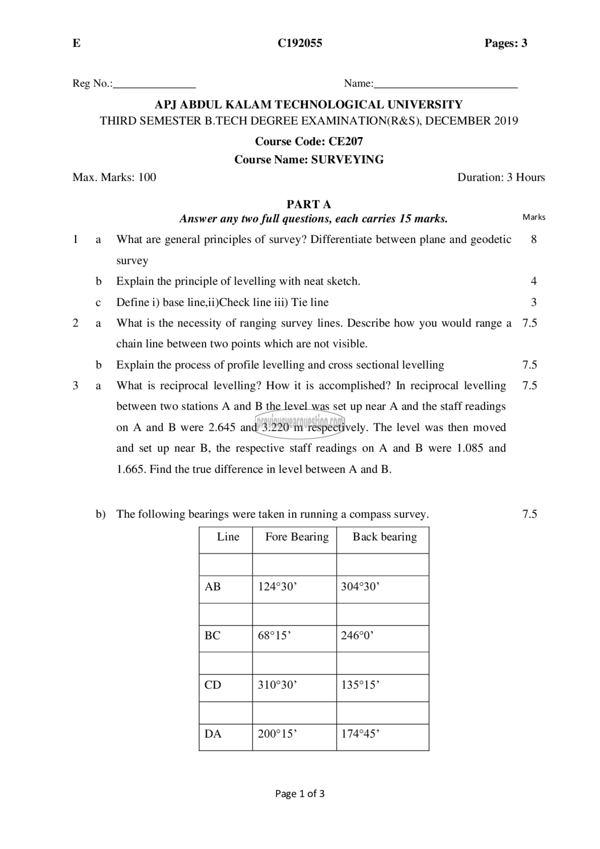 THIRD SEMESTER B.TECH DEGREE EXAMINATION(R&S), DECEMBER 2019
