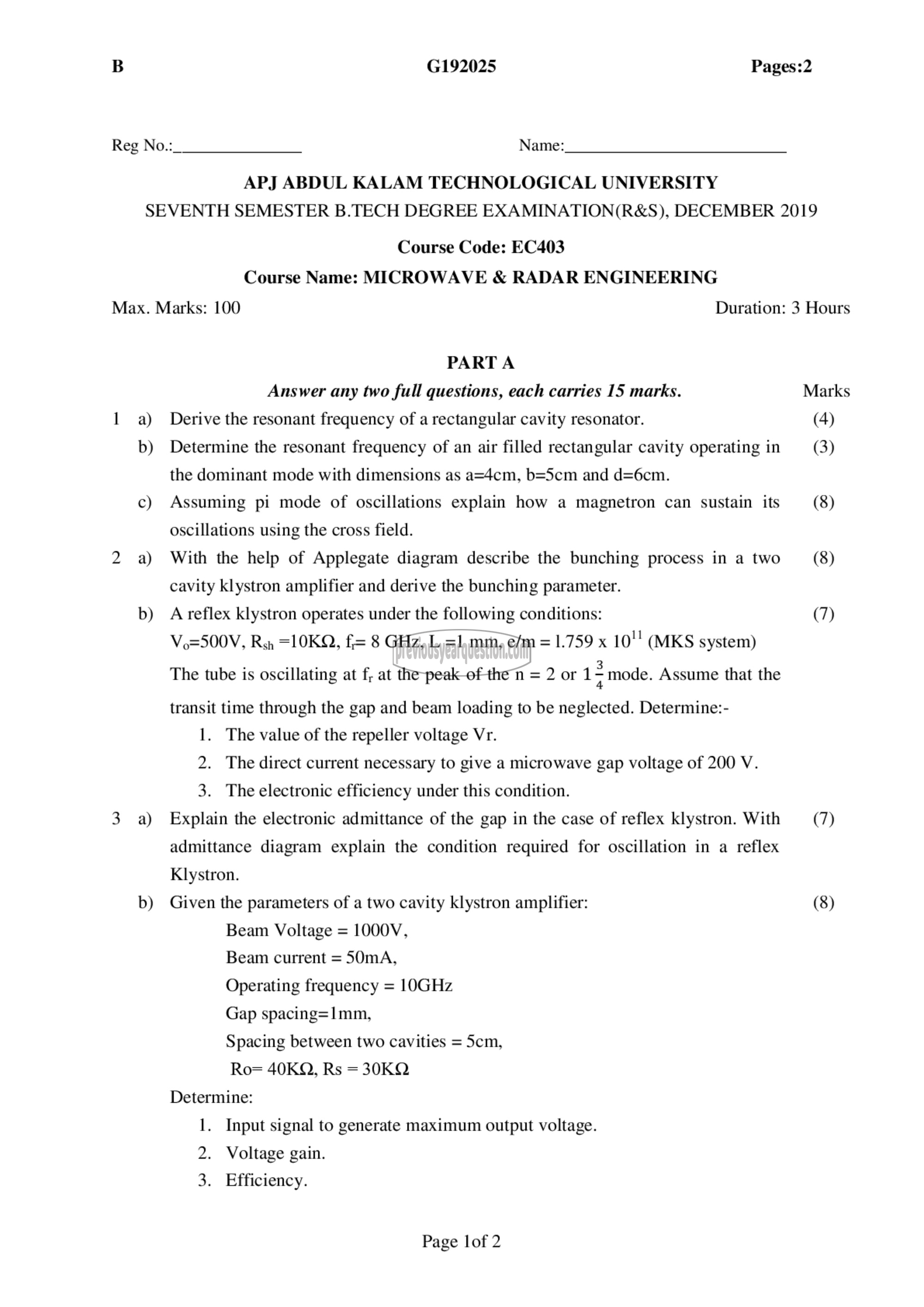 Course Name: MICROWAVE & RADAR ENGINEERING