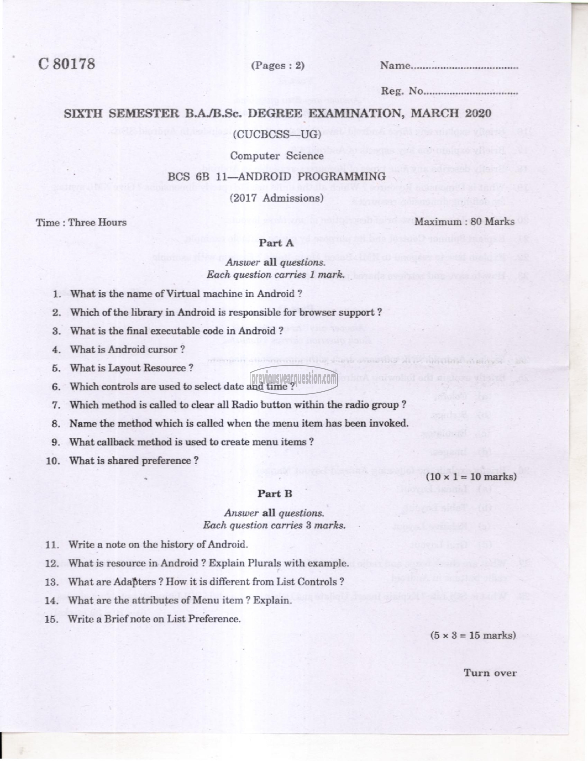 SIXTH SEMESTER B.A/B.Sc. DEGREE EXAMINATION, MARCH 2020