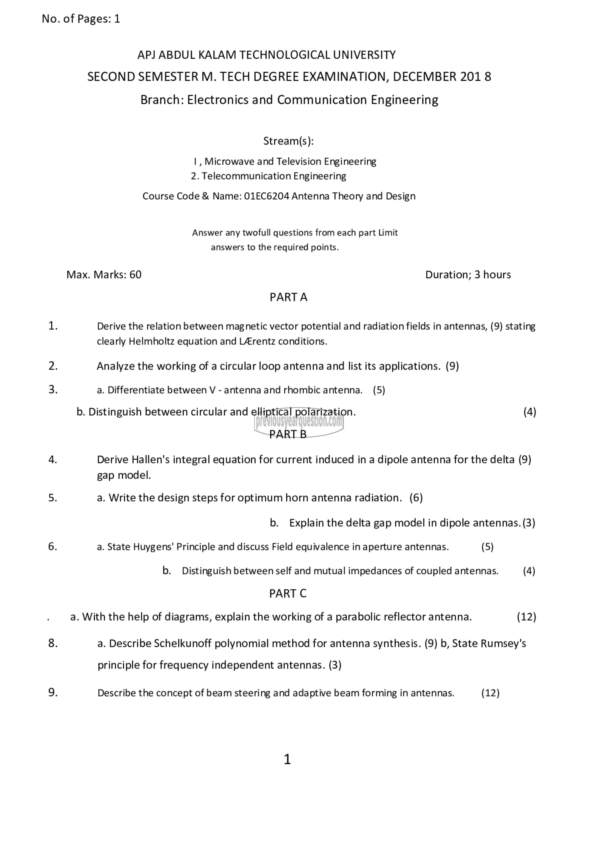 Course Code & Name: 01EC6204 Antenna Theory and Design