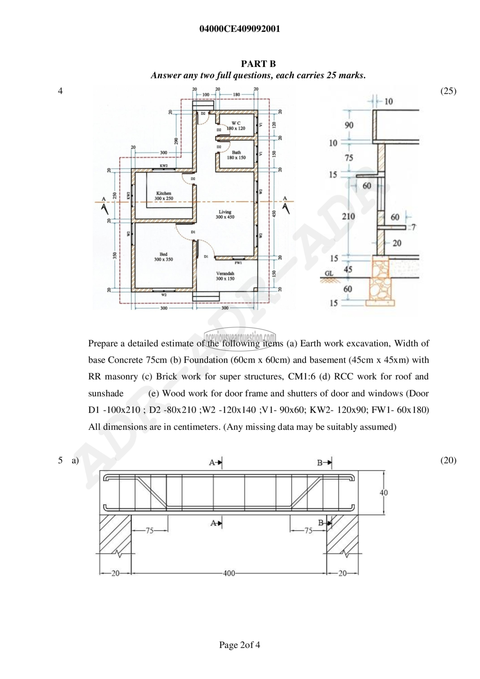 Prepare a detailed estimate of the following items (a) Earth work excavation, Width of