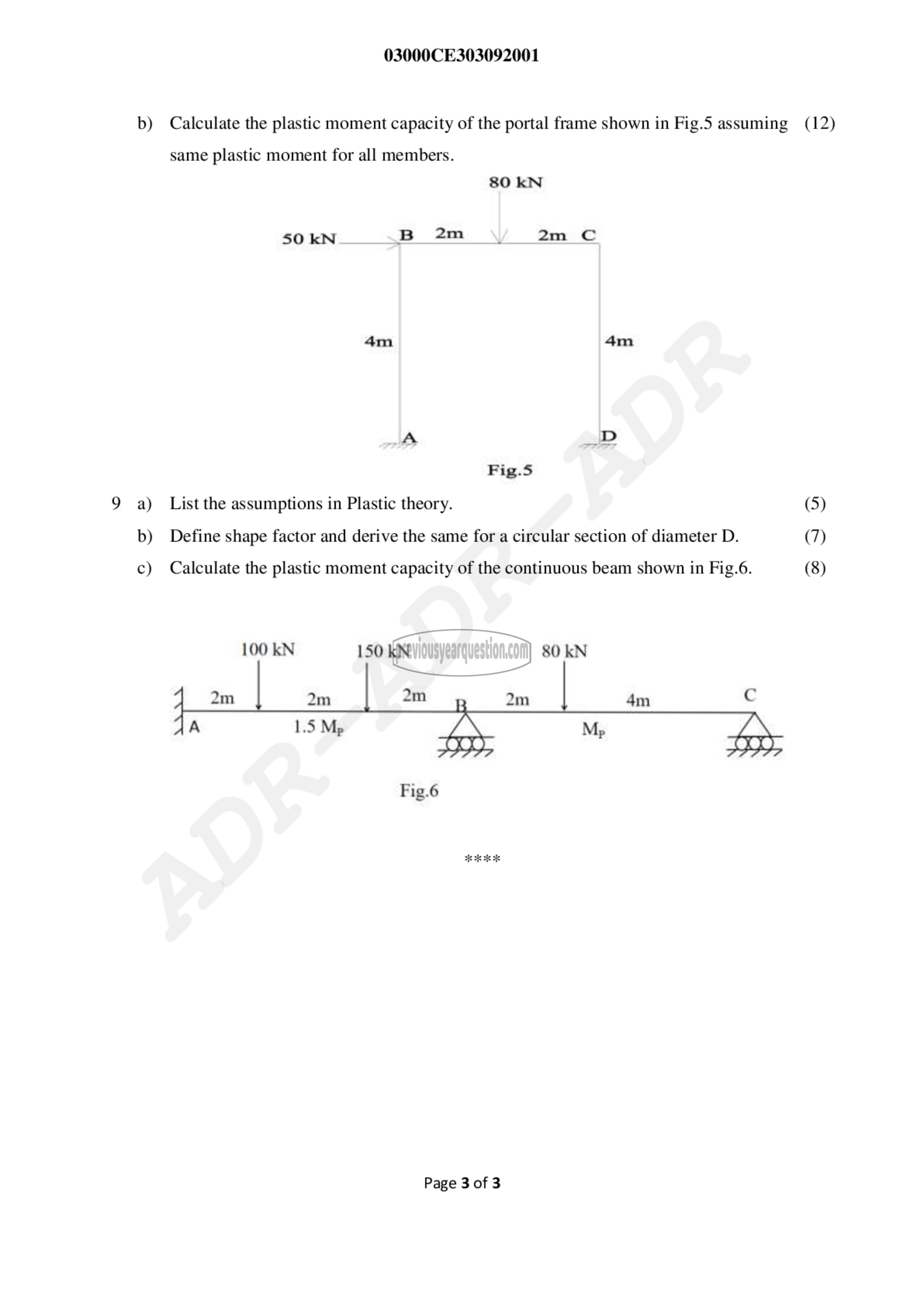 c) Calculate the plastic moment capacity of the continuous beam shown in Fig.6. (8)